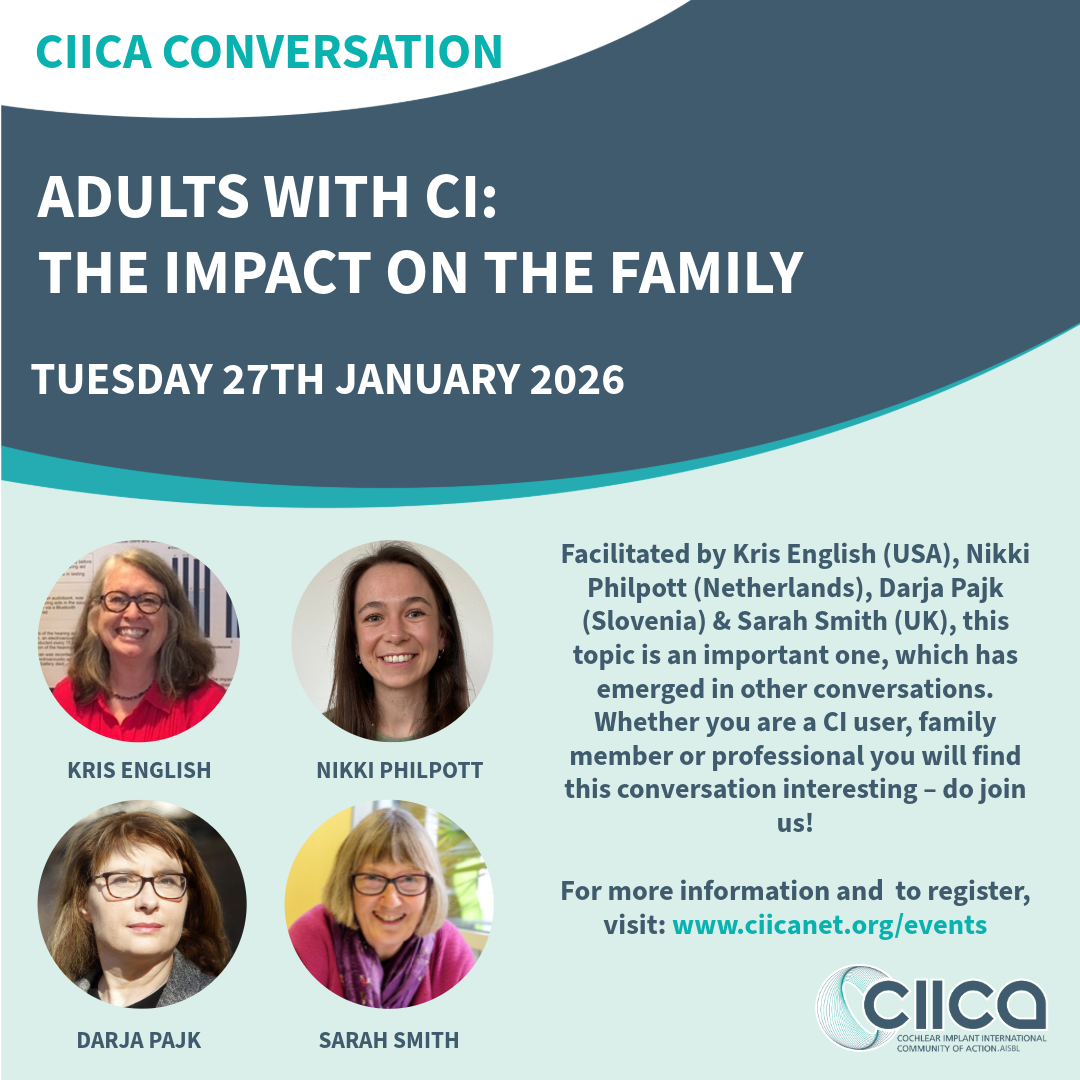 At our CIICA Conference, Zala Tomasic, MEP, shared her experience as a daughter of a deafened adult who received CI. Whether you are a CI user, family member or professional you will find this conversation interesting – do join us!